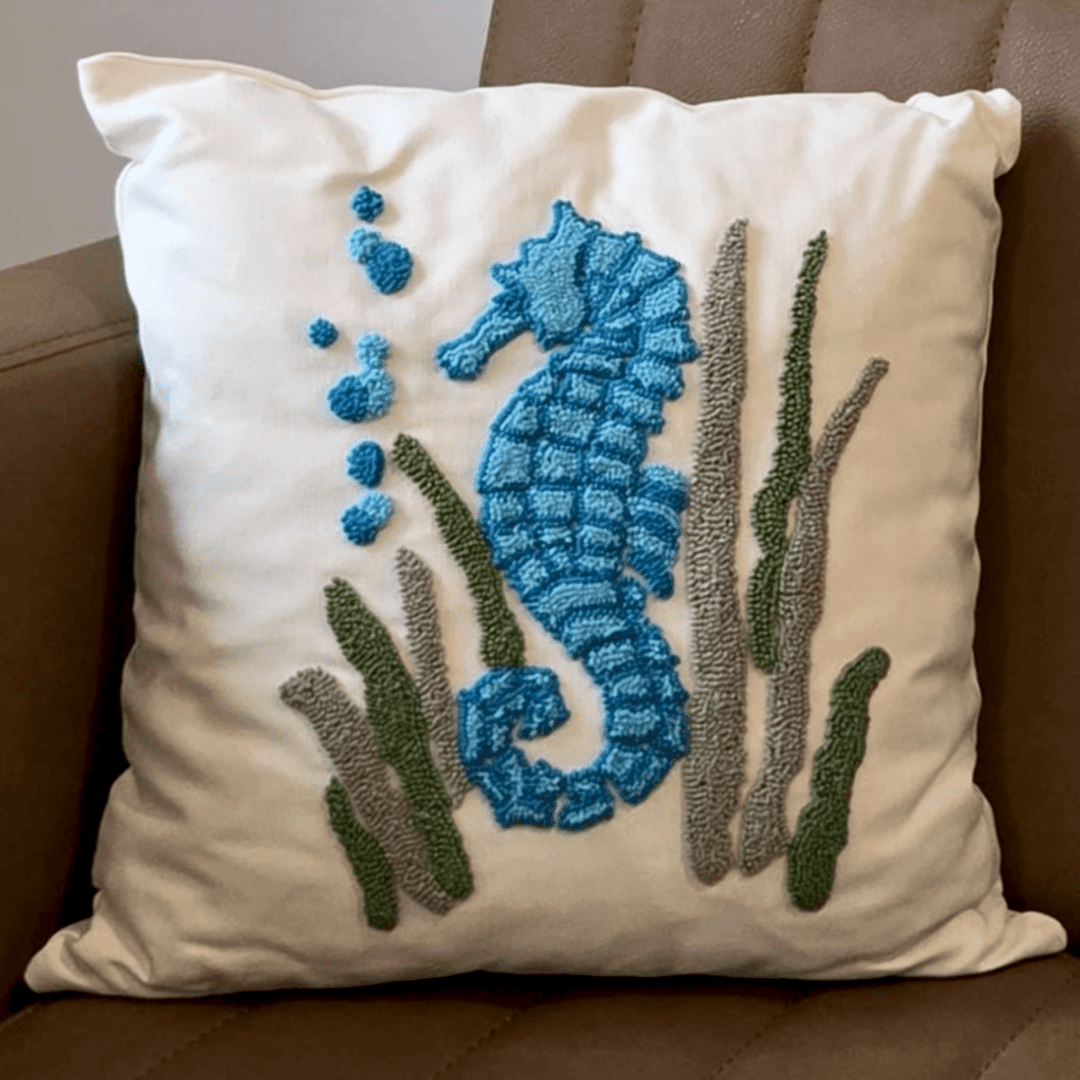Sipariş ver/Bilgi AlÖzel elle işlenmiş deniz atı desenli minder.