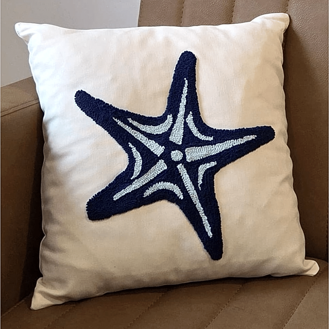 Özel elle işlenmiş deniz yıldızı desenli minder.